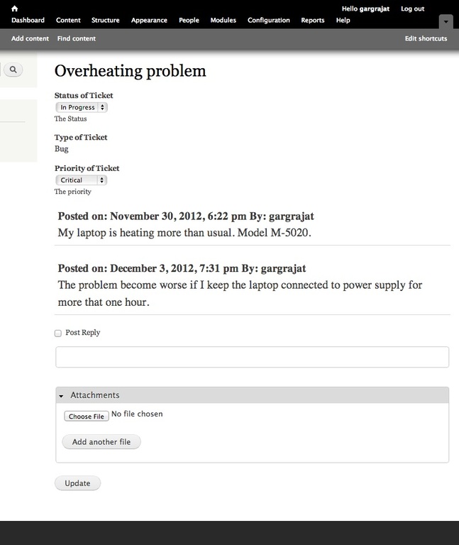 You can update ticket/post reply from this screen. Click on Update when you are done.