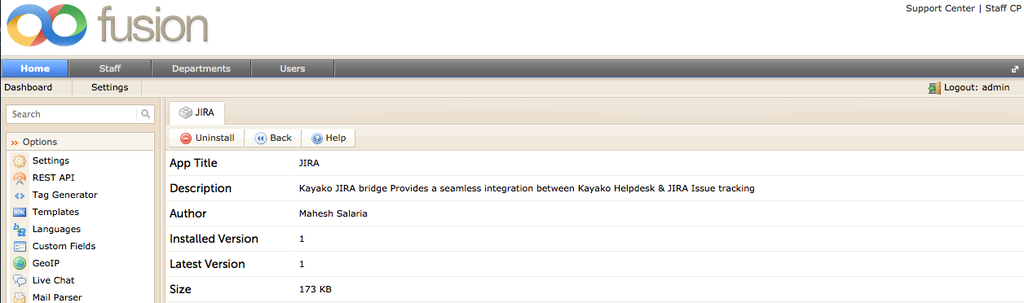 - Now JIRA is installed in your helpdesk. If you want to uninstall it, then simply click on ‘Uninstall’ button.